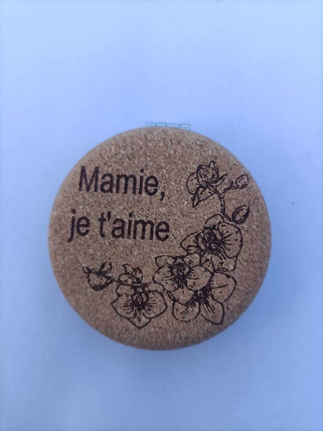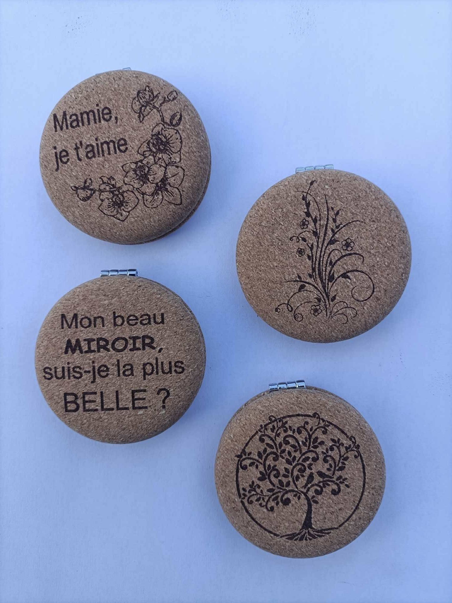 Miroir de poche en liège a personnaliser pour faire plaisir ou ce faire plaisir !